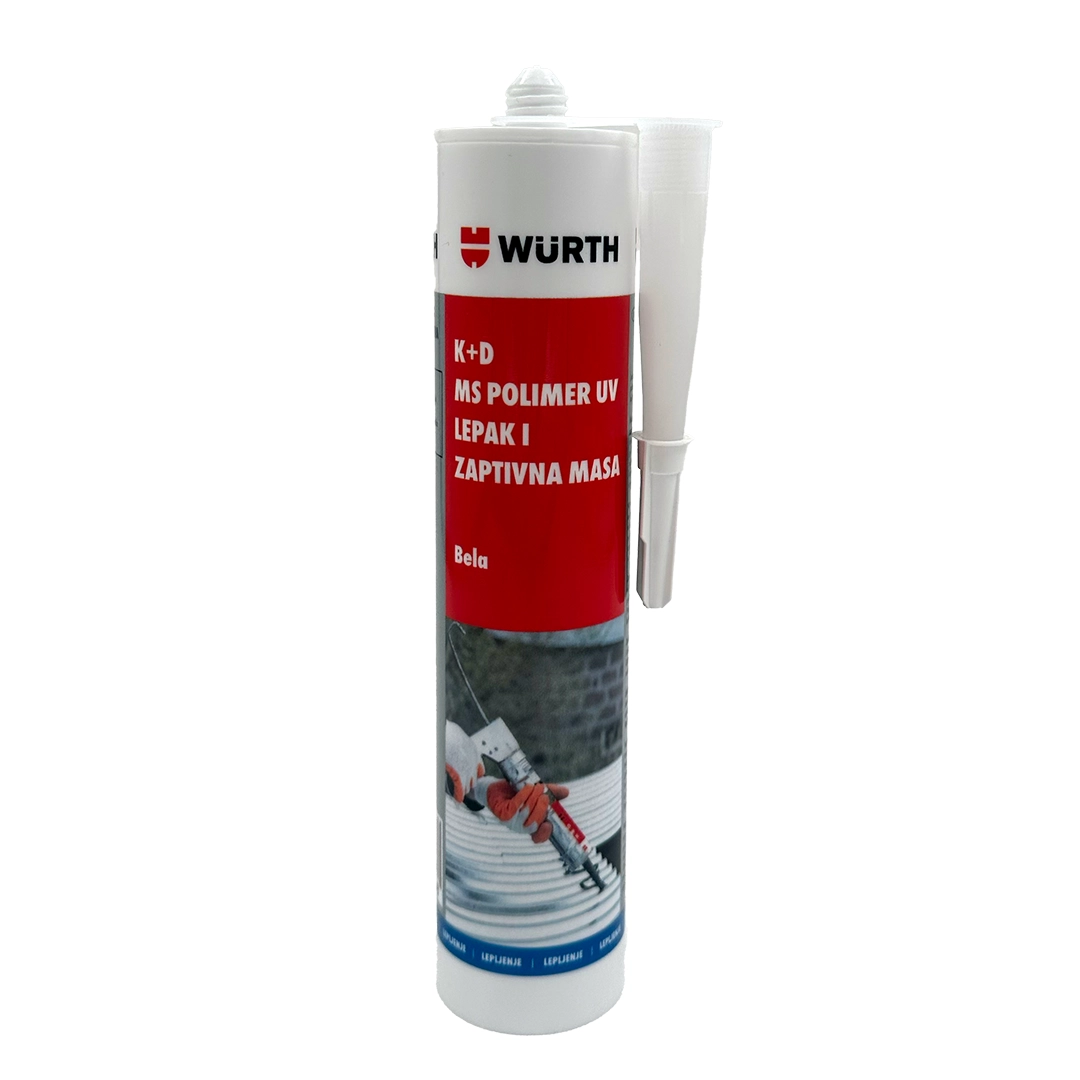 K+D MS Polimer UV lepak i zaptivna masa je jednokomponentni hibridni polimer namenjen za elastično lepljenje i zaptivanje različitih materijala. Odlikuje ga odlična otpornost na UV zračenje i vremenske uslove, trajna elastičnost i snažno prijanjanje bez prajmera. Pogodan je za staklo, metal, drvo, keramiku, beton i kamen, kao i za limarske radove, industrijske spojeve i fugovanje.