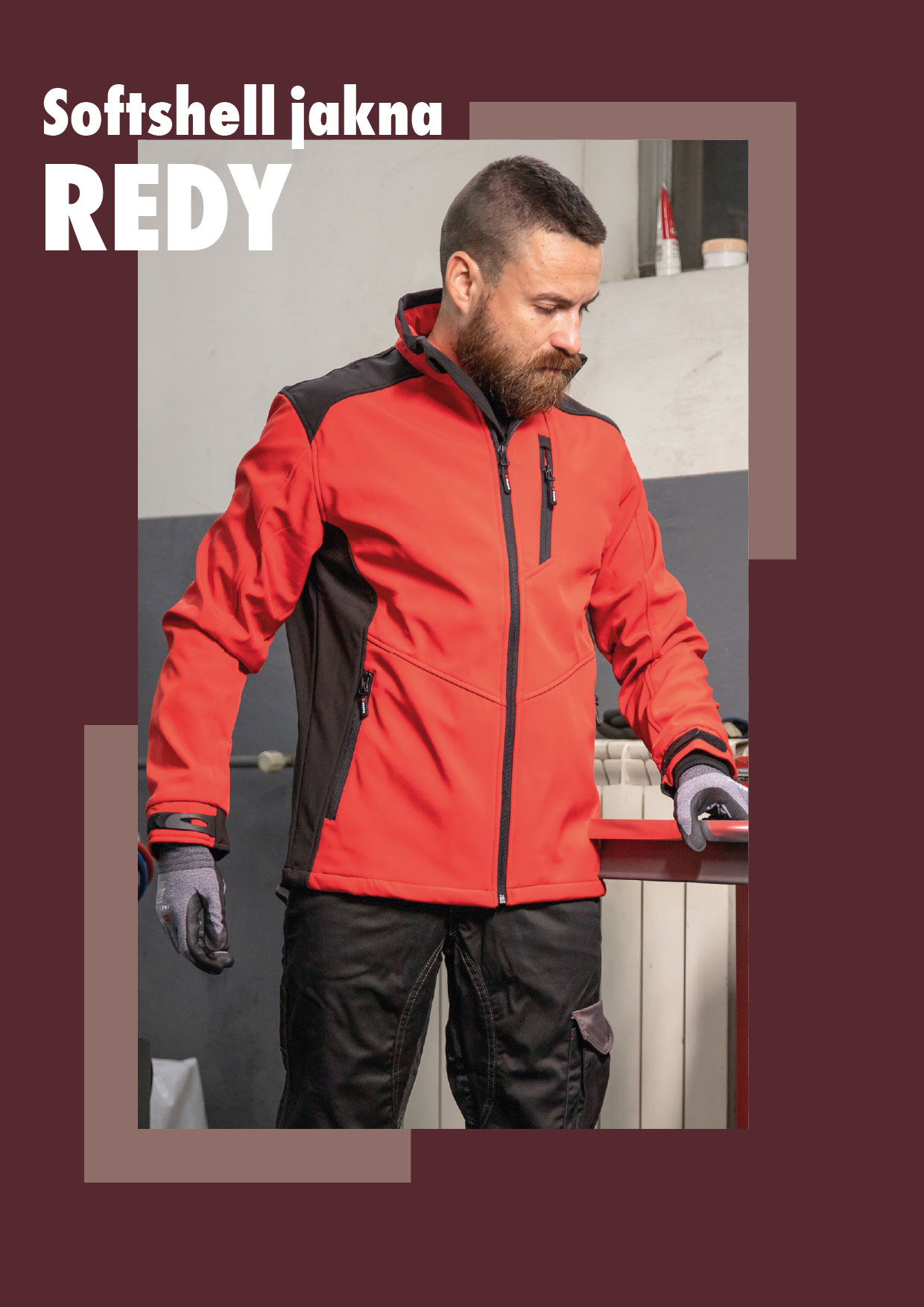 Redy Softshell jakna sportskog dizajna, crveno-crne boje, namenjena za svakodnevne aktivnosti.